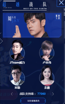 周杰伦(队长)、威力(JTeam经理,周杰伦好友)、White(超人气LOL主播)、米勒(LOL官方解说)、余霜(LOL官方主持)