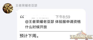 另外体验服已经将近一个月未开放申请资格,有很多小伙伴询问开启时间,针对这个问题,日前负责体验服的老亚瑟予以了答复:将会在下周开启!