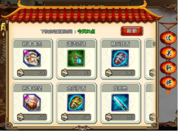 过关斩将商店:玩家在过关斩将中通过的关卡越多,则可获得越多的无双币。无双币是用于兑换奖励的必需品,玩家可以在过关斩将商店兑换各种珍稀物品,比如独有的武将将魂、稀有的装备等。