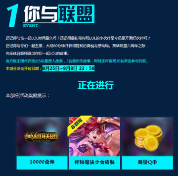 1. 活动时间:8月25~9月8日 23:59 。本活动每部分活动开放时间不同,敬请留意。