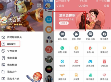 1、首先进入到手机QQ,找到QQ钱包入口,进入QQ钱包界面之后,我们会在最上方看到有一个【爱就去撩吧,测测你的撩力值】滑动页面,如图所示。