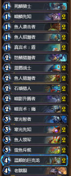 打法:起手留骇,疯狂药水,低费怪,对面没交黑骑士和湮灭的时候尽量不要裸下大怪和嘲讽怪护脸。宴会牧师留着刷血不要裸下,能aoe就aoe,不要被加了反魔法护罩解不掉。灭用来处理被骨魇加buff的怪。