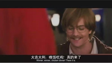 相信很多人不知道这个吃鸡梗,更多的是从直播间们主播的口头禅中听来的。这段话的英文原版是“WINNER WINNER ,CHICKEN DINNER!”,源于电影《决胜21点》中的一段台词。