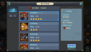 在《汉王纷争》中,资源和金钱的多少也会决定一个国家强盛的程度,从跑商中获得势力积分是玩家充盈国库的重要途径。而国库资源则可以用来研究国家科技、购买国家商城道具。在爆发国家战争的时候,还可以消耗国库资源购买团队buff。