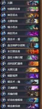 对牧师:内战就是起手找58同城,注意防疯狂药水,最主要还是谁先过到58同城谁基本赢了。这套牌打大哥牧是劣势,如果能疯狂药水拐了巴内斯的战吼还有的打,卡扎找5费的单体变羊,还好大哥牧因为本身不稳定,所以比较稀有。