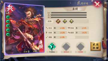 廉颇的技能使他具备了较强的生存力和肉度,并且每回合都有几率恢复一定的兵力,当满级时,触发的几率为100%,越打兵越多,让敌人感到绝望。
