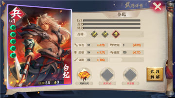 身为五星人物,白起的技自然要对的起他的星级,其疾如风使白起可以在前3回合为我军提供速度属性,谋略越高速度提升越高,每回合还有几率进行两次普通攻击,可以打出两倍的伤害,满级几率为70%。