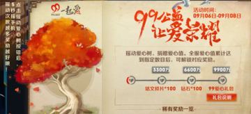 作者:网友整理 人气:099公益让爱荣耀,天美官方再次以九月九日重阳节热点,做出了一款感动人心的活动。汇聚万千玩家的力量,让王者荣耀也能温暖这个世界。本页面集合了关于99公益,让爱荣耀的所有活动攻略,以及各种玩法大全,只有你想不到的,没有囊括不到的内容!