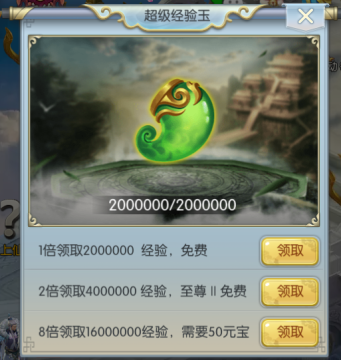 经验副本是玩家每天获得经验的主要途径,在完成挑战后,只要可以花费少量的元宝,即可以获得3倍经验!性价比非常高!