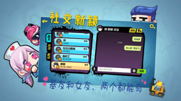 反斗联盟是一款联网对战手机游戏,玩家可以通过个人或者组队匹配的方式与其他玩家进行联网对战。游戏画面清新亮丽,人物设定搞怪有趣,适合带妹子一起玩哦!游戏采用双摇杆操作,左摇杆控制移动,右摇杆控制射击。除去基本的射击以外,游戏还加入了技能,不同的技能有不同的效果,瞬移,护盾只要合理运用就会让你如虎添翼。