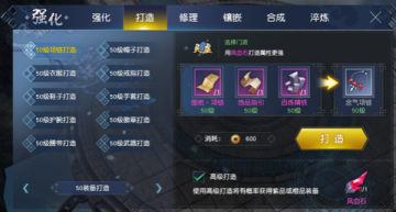 点击“淬炼”界面,选择装备进行淬炼。淬炼必定成功,只是结果将有所不同,每淬炼一次,该装备的剩余淬炼次数将减少1次,次数为0时,不可再淬炼。只有满强化的装备才能进行淬炼,且淬炼属性不可转移。