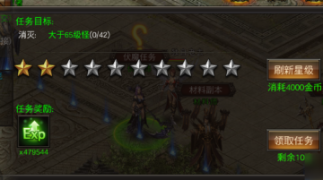 2、玩家可通过刷新星级改变任务的奖励,每次刷星需要消耗一定的金币,任务星级最高为10星;