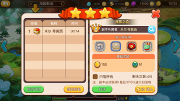 最后一个途径就是扫荡关卡,扫荡关卡需要消耗体力,如果你有大量的体力剩余的话,那就去扫荡关卡吧,除了获得基础的经验和金币,还有概率获得其他物品奖励哦。
