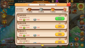 每日任务是游戏中的一个特色玩法,单人参加,可以获得大量的经验和钱币道具的奖励。每天刷新一次次数,活动时间是全天开放,随时都可以参加,小伙伴们想要升级的快,每天都不要错过哦。