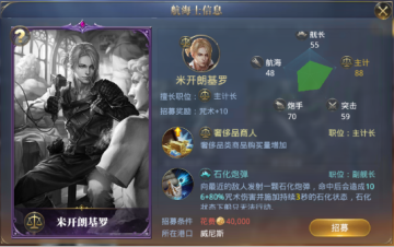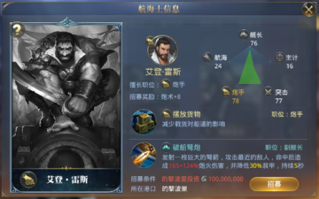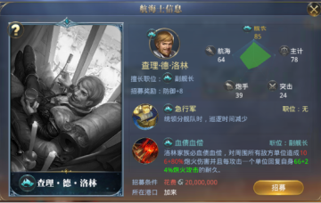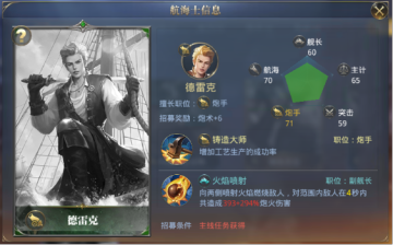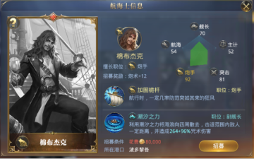 投资能帮助你享受的黎波里的特权,技能又可以提升航海的速度,招募这样一个勇猛的炮手,还是相当划算的。