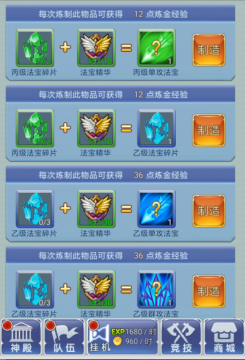《萝莉养成计划》中玩家只要收集一定数量的法宝碎片以及足够的法宝精华(法宝精华可通过商城-道具进行购买、副本中掉落或者各种箱子中开启等多种途径),就可以在法宝炼制界面制造法宝。