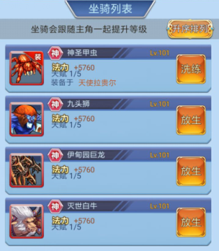 3.高等级坐骑将经验传给低等级坐骑。