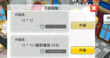 ●家园的初始面积为6 * 6,升级后最大面积为15 * 15。