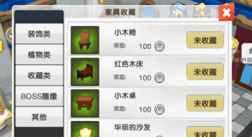 ●获得家具会得到一份收藏奖励,奖励内容包括银币、金币以及角色属性等。