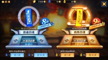 召魂消耗:普通召魂消耗普通召魂符、高级召魂消耗高级召魂符。或每隔22小时免费普通召魂一次,每隔46小时免费高级召魂一次