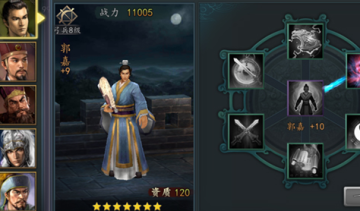 同时,武将们都可以用进阶的方式来提升属性,在剧情中可以获得各种各样的材料,用它们能提升武将武力,智力,统率,带兵数等一系列属性,当武将完成某一阶段的进阶之后,还能获得额外的属性奖励。由于初期材料有限,所以最好把它们优先给主力武将。