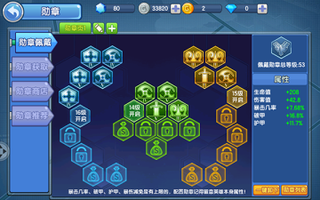勋章是提升战斗能力的一个重要途径。游戏当前有1-5级勋章,又分为防御、伤害等多个类型,如何组合搭配大家可以自由发挥。