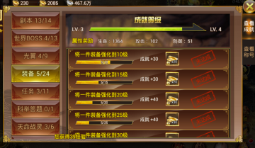全身强化到3~6~10之后每强化多5级就加成一次。还有绑定元宝领取。