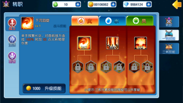 战士、法师、刺客每种职业都有火水风3系技能。其中一转技能为主动技,有瞬发技、手势技。而二转技能则为辅助技,为玩家提供各种属性的增强效果。