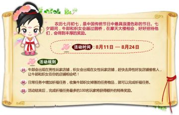 答:男性玩家只出现活动客人牛郎,女性玩家只出现活动客人织女,你需要去女性好友家拉去织女,才可以 顺利领取七夕祈福礼包。