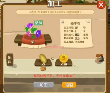 温馨提示:加工坊使用的金币为农牧场通用金币。