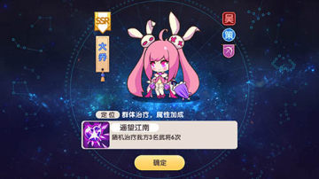 大乔把手中的伞丢向空中,聚集起了兔兔之力随机治疗我方3名武将6次