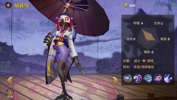 姑获鸟与妖刀姬一样,都是属于物理输出式神,在物理等级上为A,低于妖刀姬一级,操作难度也没那么高,姑获鸟的游走和突袭能力不错,如果妖刀姬玩不习惯的,不妨尝试使用姑获鸟。
