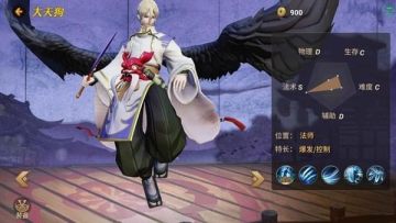 大天狗无论是在阴阳师,还是在决战平安京,一直都是人气满满的式神,因为他够帅,实力够强大!在决战平安京里,大天狗是一位强大的法术输出式神,法术等级达到S,操作难度C,所以大天狗排第一也算众望所归。