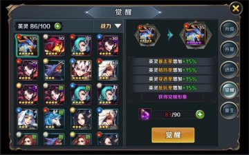 英灵的属性加成不仅可以通过升级和升星来获得,还能通过觉醒获得更多的属性加成。不同品质的英灵觉醒需要的材料不一样,四维(暴击率、格挡率、穿透率、抵抗率)提升也不一样。