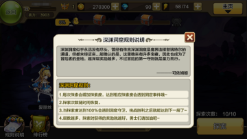 深渊洞窟探索次数一小时恢复一点,探索的时候可能遇到怪物、玩家以及皇家商店。