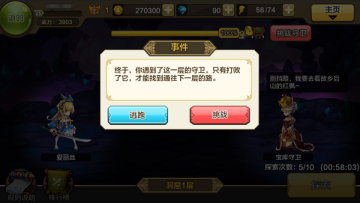 另外一点是探索的层数越高,所获得的奖励丰厚,可能很多勇者大人不知道这个规则,所以每次都只是简单的往下探索,遇到守卫怕打不过浪费次数。实际上这样会导致每次探索的奖励都在那个档位,所以建议遇到守卫的时候,不管怎么样都要去尝试一下的,万一过了呢,要知道下一层的奖励更好哦~