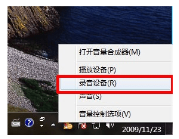1.右击右下角的小喇叭图标,选择“录音设备"