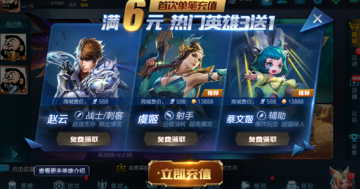 王者荣耀满6元热门英雄三选一哪个好 首冲6元三个英雄价格谁贵