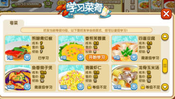 丫丫提示:如果学习同级别菜快的话,每小时经验值略微比这个表格计算的高一点。丫丫开的是川菜管,现在正在努力学习粤菜,以前丫丫不知道可以去别的餐厅学菜,所以浪费了很多时间,后面发现可以去别的餐厅学菜后,一直不停地在学,比如说我10级,如果我不是学菜,那么我的菜普就只能是川菜8级、川菜9级、川菜10级三首菜,如果我在别的餐厅学到粤菜9级菜了,我的菜普就可以变成。川菜9级、粤菜9级、川菜910级,如果学我会了粤菜10级了,那就更好了,我的菜普可以是:川菜9级、粤菜10级、川菜910级,这样升级经验就更快了。参考一下丫丫的学习图: