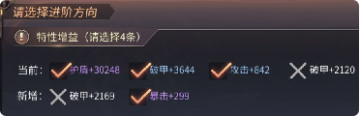 装备进阶除了可以提升其基础属性外,还可以换上更好的特性增益。