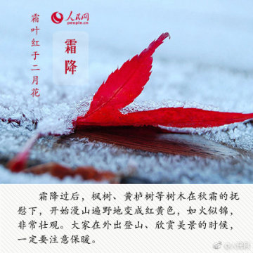 今天迎来了二十四节之一的霜降节气,也就意味着冬天马上要到来了,小伙伴们一定要注意保暖,快和小编一起来看看下面这组霜降相关的图片吧!