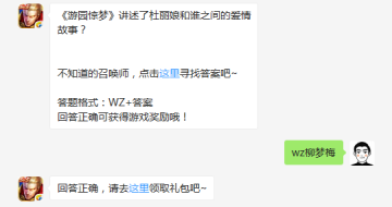 题目:《游园惊梦》讲述了杜丽娘和谁之间的爱情故事? 答题格式:wz+答案,今天的王者荣耀答案小编为大家整理好了,希望对玩家获得微信额外的奖励有帮助,不清楚10月25日王者荣耀游戏每日一题答案的玩家速来看看,希望对大家获得腾讯微信免费发放的奖励有帮助。