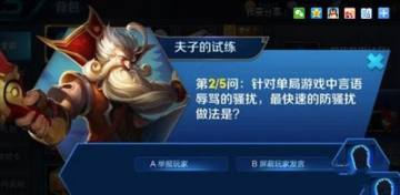 针对单局游戏中言语辱骂的骚扰最快速的防骚扰做法是 夫子的试炼答案