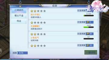 生命不止,战斗不息!各位少侠在游戏过程中,有可能会触发各种成就,成就达成即可获得相应的元宝奖励。很多热衷于集成就的玩家可以根据成就来自己完成,既有成就头衔加持,还能领取元宝大奖,一举两得,千万不要错过。