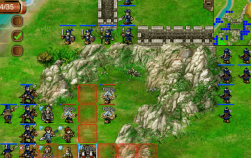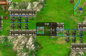 回合开始,敌方一队兵在中间城墙处,别被敌诱无头冲杀,你会被包饺子虐杀致死的,第四回合会出现剩余6队伏兵,总共42敌兵,第一次看到有种无处躲藏的错觉。所以按照地形策略,利用前3回合快速移动至左下战略要地,拍好兵,布好阵,加好buff,等着敌兵来打埋伏站。