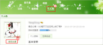 第一步:登录您QQ空间,点击导航上的“个人档”=》“修改头像”;