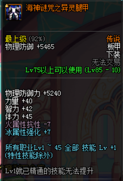 海神腿是大多数职业BUFF换装都用得上的装备,属性是1-45级全部技能+1,获取方式也非常简单,近期的传说装备活动多如牛毛,直接换1个即可。如果你没有换到也没关系,直接拍卖行买一个白月沉息护腿,一样的效果。