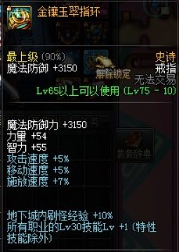 戒指部位能增加技能等级的装备有1个金镶玉翠指环,如果你打团有幸翻到了就千万别分解,属性是所有职业的30级技能+1。除此之外,改版之后的高科技戒指也拥有加1级杀意波动的属性,建议用已经做过高科技戒指的角色重新领,只需要30个虚空魔石和跨界材料就可以。