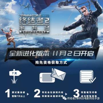 关注官方微博@终结者2审判日,转发官方指定活动微博,即可抽取内测激活码。