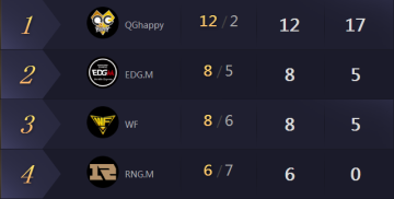 B组的实力上游和下游实力差距很大,所以很多战队都已经保证了出线,而QG就是其中佼佼者,其他出线的战队还有EDGM,WF以及RNGM。
